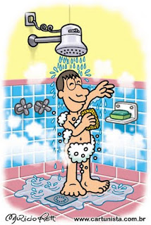 24. Não se dá conta de que todo o banheiro está molhado pois, tomou banho com o box aberto.